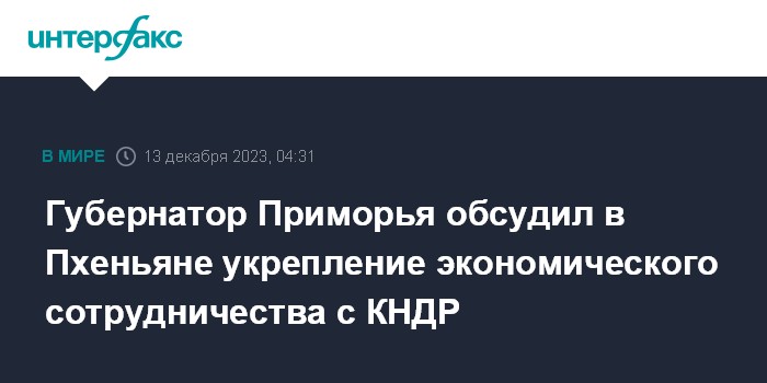 Губернатор Приморья обсудил в Пхеньяне укрепление экономического сотрудничества с КНДР