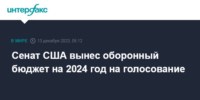 Москва. 13 декабря. INTERFAX.RU - Сенат США во вторник вынес закон об ассигнованиях на национальную оборону (NDAA) на окончательное голосование, сообщает The Hill.