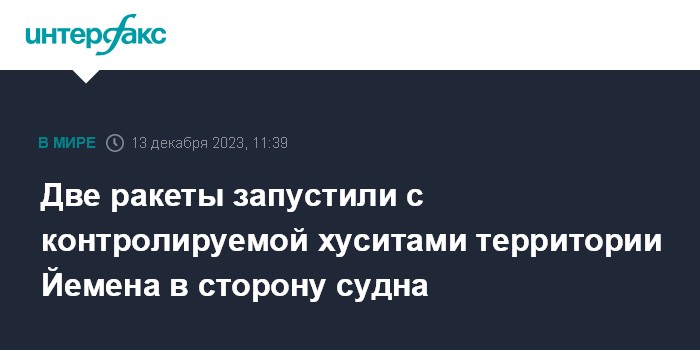 Две ракеты запустили с контролируемой хуситами территории Йемена в сторону судна