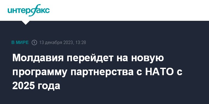 Москва. 13 декабря. INTERFAX.RU - Правительство Молдавии продлило на 2024 год индивидуальный план партнерства с НАТО (Individual partnership action plan, IPAP), а с 2025 года Молдавия перейдет на новую партнерскую программу с НАТО (Individually tailored partnership programme, ITPP).