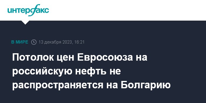 Потолок цен Евросоюза на российскую нефть не распространяется на Болгарию