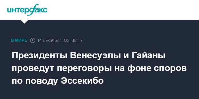 Москва. 14 декабря. INTERFAX.RU - Лидеры Венесуэлы и Гайаны Николас Мадуро и Ирфаан Али в четверг проведут встречу с целью снижения напряженности в отношениях между странами на фоне территориального спора вокруг региона Эссекибо.