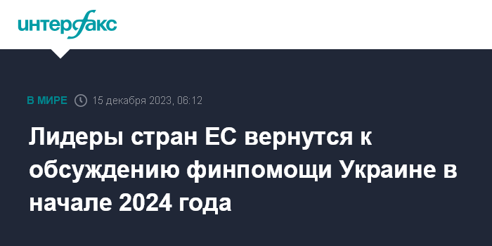 Лидеры стран ЕС вернутся к обсуждению финпомощи Украине в начале 2024 года