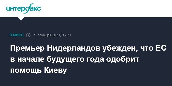 Премьер Нидерландов убежден, что ЕС в начале будущего года одобрит помощь Киеву