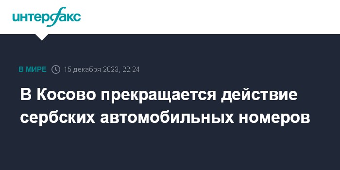 Москва. 15 декабря. INTERFAX.RU - Срок действия сербских автомобильных номерных знаков истек в пятницу на территории Косово и Метохии, сообщает телерадиоканал РТС.