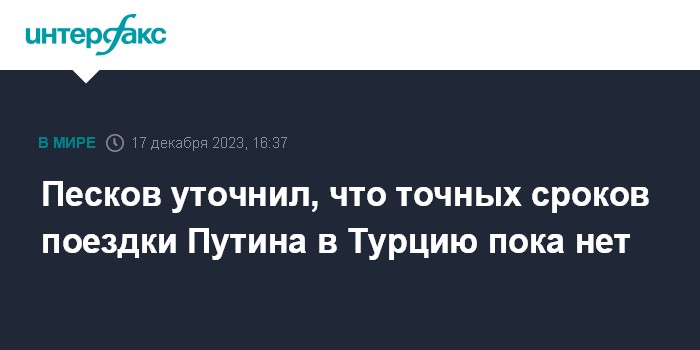 Песков уточнил, что точных сроков поездки Путина в Турцию пока нет