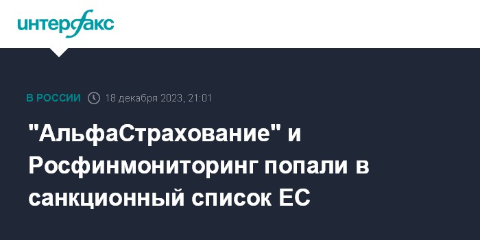 "АльфаСтрахование" и Росфинмониторинг попали в санкционный список ЕС