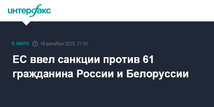 ЕС ввел санкции против 61 гражданина России и Белоруссии