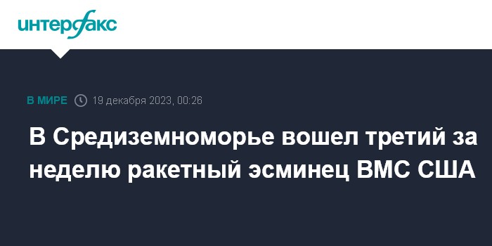 Как сообщал 6-й оперативный флот, 11 декабря в Средиземное море прибыл ракетный эсминец USS Laboon, который затем проследовал в Красное море. Вслед за ним 14 декабря в Средиземное моря вошел эсминец USS Delbert D. Black.