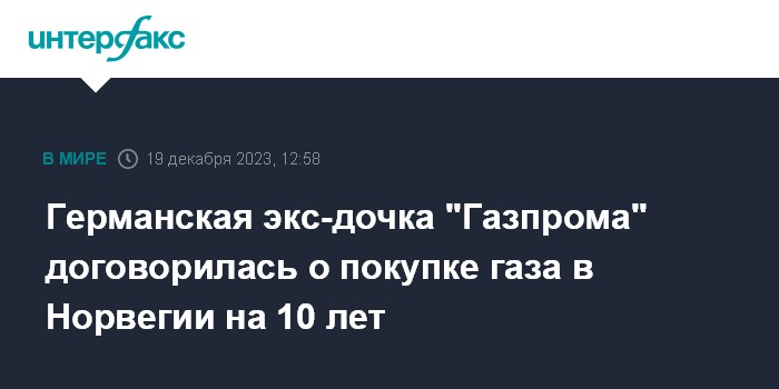 Германская экс-дочка "Газпрома" договорилась о покупке газа в Норвегии на 10 лет