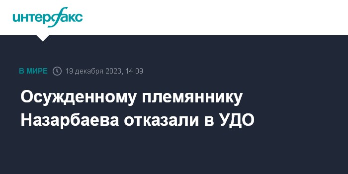 Москва. 19 декабря. INTERFAX.RU - Племяннику первого президента Казахстана Нурсултана Назарбаева Кайрату Кайрату Сатыбалдыулы, приговоренному к шести годам лишения свободы, суд Восточно-Казахстанской области отказал в условно-досрочном освобождении.