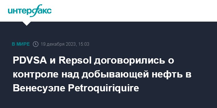 PDVSA и Repsol договорились о контроле над добывающей нефть в Венесуэле Petroquiriquire