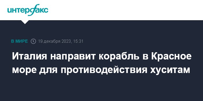 "Италия вместе с международным сообществом внесет вклад в противодействие дестабилизирующей террористической деятельности хуситов, которую мы уже осудили, в защиту процветания торговли, обеспечения свободы судоходства и международного права", - говорится в заявлении итальянского Минобороны.