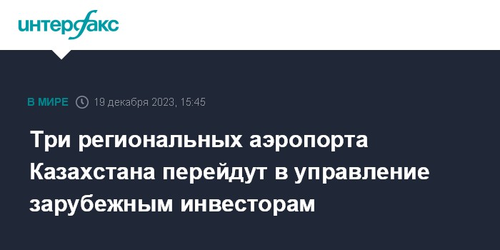 "В целях создания мультимодальных центров в аэропортах страны проводится комплексная работа по привлечению частных инвесторов, обладающих необходимыми компетенциями и капиталом... Ведутся переговоры по передаче аэропортов Актобе, Туркестана и Кызылорды в доверительное управление крупным глобальным инвесторам, имеющим опыт работы в этой сфере", - сказал Карабаев.