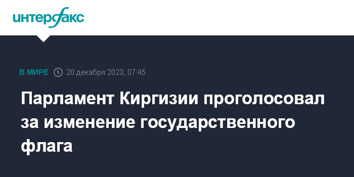 Москва. 20 декабря. INTERFAX.RU - Парламент Киргизии на заседании в среду принял законопроект об изменении государственного флага.