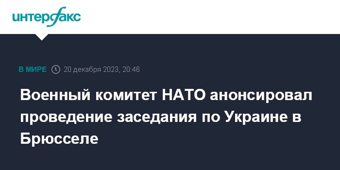 Москва. 20 декабря. INTERFAX.RU - Высший военный орган НАТО - Военный комитет - проведет в Брюсселе заседания 17-18 января 2024 года на уровне начальников генеральных штабов стран Североатлантического альянса, также впервые пройдет заседание в формате Совет НАТО-Украина, сообщила в среду штаб-квартира организации.