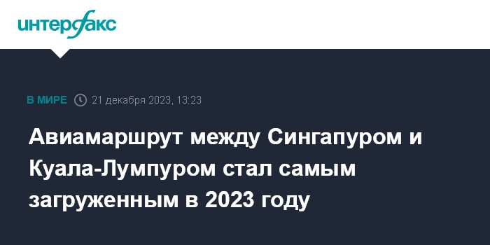 Авиамаршрут между Сингапуром и Куала-Лумпуром стал самым загруженным в 2023 году