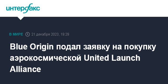 Blue Origin подал заявку на покупку аэрокосмической United Launch Alliance