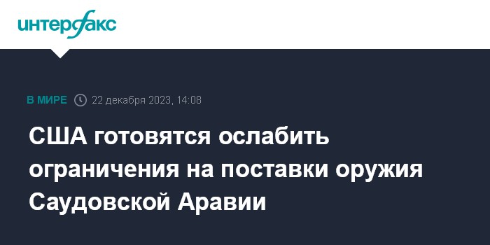 "Официальные лица США заявили в четверг, что администрация президента Джо Байдена готовится ослабить ограничения на продажи некоторых видов вооружений Саудовской Аравии, ускорить процесс смягчения ограничений, отдавая должное мирным переговорам королевства с военизированными группировками в Йемене", - информирует газета.