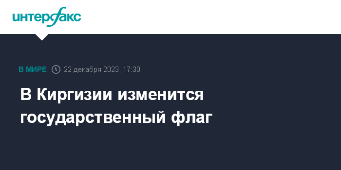 Москва. 22 декабря. INTERFAX.RU - Президент Киргизии Садыр Жапаров подписал закон об изменении государственного флага, сообщает в пятницу пресс-служба киргизского лидера.