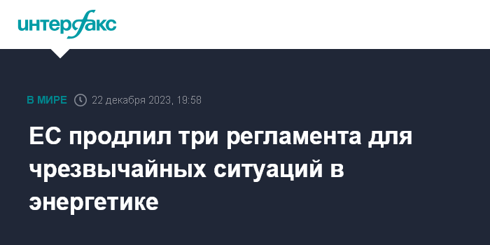 19 декабря Совет ЕС по энергетике достиг политического соглашения стран ЕС о продлении срока действия трех постановлений по чрезвычайным ситуациям.