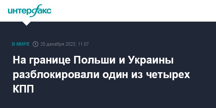 "Совместно мы финализировали план действий для разблокирования границы. Согласовали протокол с единой позицией министерств. Об этой встрече договорились в среду (20 декабря - ИФ) Александр Кубраков (вице-премьер - глава Минвосстановления Украины - ИФ) и министр инфраструктуры Польши Дариуш Климчак", - написал Деркач в Facebook (информационный ресурс запрещенной в РФ организации).