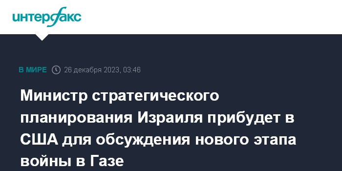 Москва. 26 декабря. INTERFAX.RU - Министр стратегического планирования Израиля Рон Дермер во вторник посетит Вашингтон, где проведет переговоры о следующем этапе войны в секторе Газа, сообщает Axios со ссылкой на осведомленные источники.