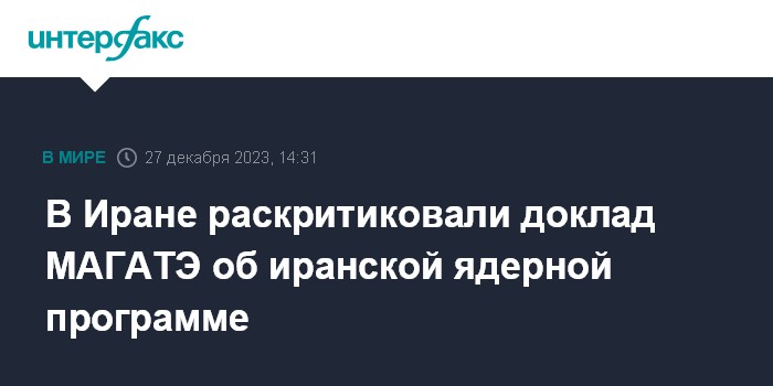 В Иране раскритиковали доклад МАГАТЭ об иранской ядерной программе