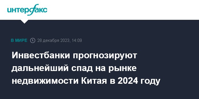 Инвестбанки прогнозируют дальнейший спад на рынке недвижимости Китая в 2024 году