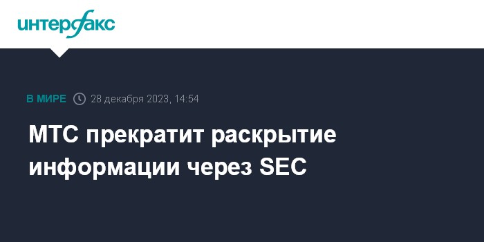 Москва. 28 декабря. INTERFAX.RU - ПАО "МТС" прекратит предоставление отчетности в Комиссию по ценным бумагам и биржам США (SEC), сообщила компания в четверг.