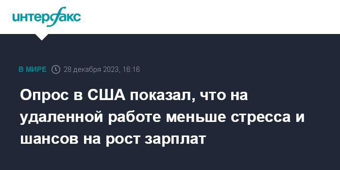 Опрос в США показал, что на удаленной работе меньше стресса и шансов на рост зарплат