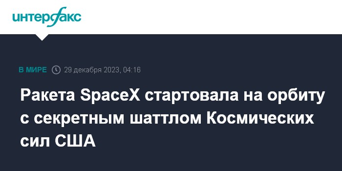 Ракета SpaceX стартовала на орбиту с секретным шаттлом Космических сил США