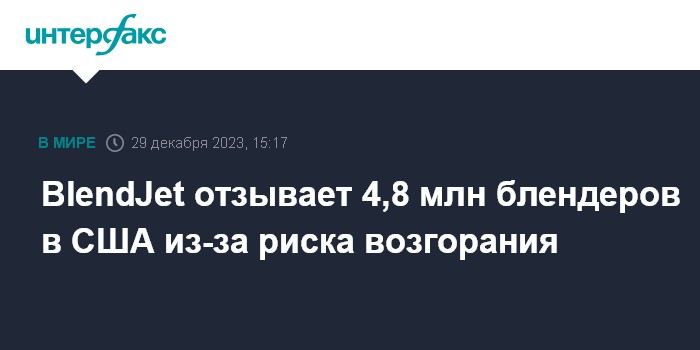 BlendJet отзывает 4,8 млн блендеров в США из-за риска возгорания