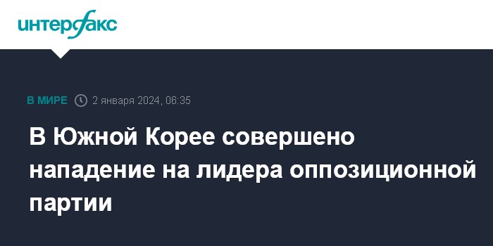 Москва. 2 января. INTERFAX.RU - Лидер оппозиционной Объединенной демократической партии Южной Кореи Ли Чжэ Мен был ранен в ходе массового мероприятия в Пусане, сообщает "Ренхап".