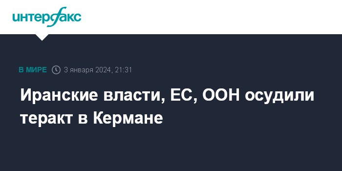 Иранские власти, ЕС, ООН осудили теракт в Кермане