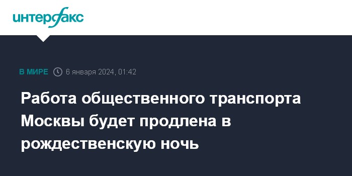 Москва. 6 января. INTERFAX.RU - Режим работы городского транспорта столицы будет продлен в ночь с 6 на 7 января.