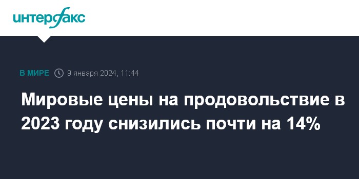 Мировые цены на продовольствие в 2023 году снизились почти на 14%