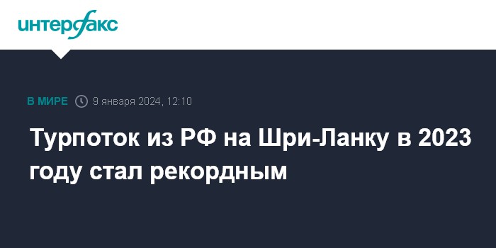 Москва. 9 января. INTERFAX.RU - Шри-Ланку в 2023 году посетили почти 200 тысяч туристов из России, это рекордный показатель за всю историю туризма из РФ в республику, сообщает во вторник Ассоциация туроператоров России (АТОР) со ссылкой на данные управления по развитию туризма Шри-Ланки.