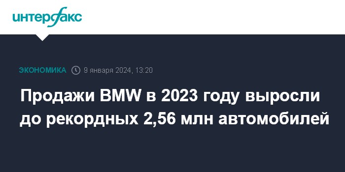 Москва. 9 января. INTERFAX.RU - Германская Bayerische Motoren Werke AG продала рекордные 2,56 млн автомобилей в 2023 году.