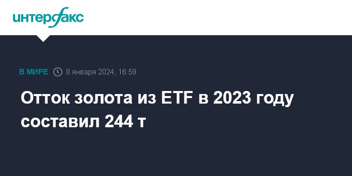Москва. 9 января. INTERFAX.RU - Мировые ETF (exchange traded funds – биржевые инвестиционные фонды) за 2023 год потеряли $14,7 млрд, что соответствует 244,4 тонны золота, подсчитал World Gold Council (WGC).