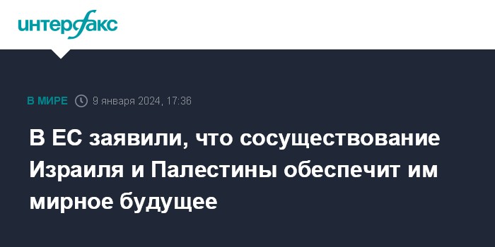 В ЕС заявили, что сосуществование Израиля и Палестины обеспечит им мирное будущее