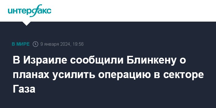 В Израиле сообщили Блинкену о планах усилить операцию в секторе Газа