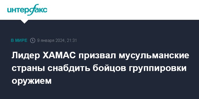 "Мы видим, как некоторые страны снабжают оружием оккупанта. (...) Пришло время для мусульманских стран поддержать сопротивление поставками оружия, потому что это битва не только палестинского народа", - приводят ближневосточные СМИ слова лидера движения.
