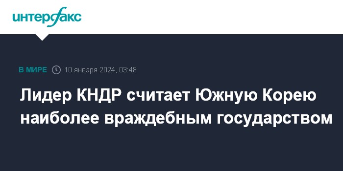 Москва. 10 января. INTERFAX.RU - Северокорейский лидер Ким Чен Ын назвал Южную Корею самым враждебным государством для КНДР и заявил, что у него "нет намерения избегать войны", сообщает Центральное телеграфное агентство Кореи (ЦТАК).