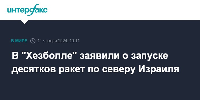 Москва. 11 января. INTERFAX.RU - Ливанское шиитское движение "Хезболла" объявило о запуске 11 января десятков ракет по городу Кирьят-Шмона на севере Израиля, передает EFE.