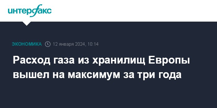 Москва. 12 января. INTERFAX.RU - Расход газа из подземных хранилищ Европы на фоне очередной волны холодов вышел на максимальный уровень почти что за три года. За последнее время больше газа из ПХГ регион тратил лишь в середине февраля 2021 года.