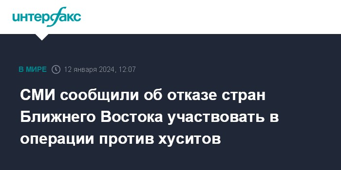 Москва. 12 января. INTERFAX.RU - Госсекретарь США Энтони Блинкен во время турне по Ближнему Востоку в начале января не сумел подписать соглашения с Саудовской Аравией, ОАЭ, Катаром и Египтом о присоединении их к операции "Страж процветания" (Operation Prosperity Guardian), направленной на обеспечение безопасности в Красном море.