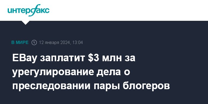 EBay заплатит $3 млн за урегулирование дела о преследовании пары блогеров