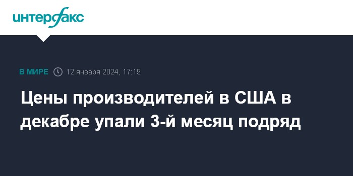 Цены производителей в США в декабре упали 3-й месяц подряд