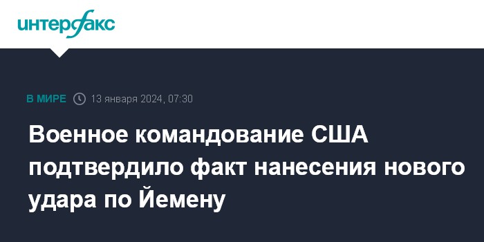 Москва. 13 января. INTERFAX.RU - Вооруженные силы США 13 января нанесли удар по радиолокационной станции хуситов в Йемене, сообщает Центральное военное командование США в соцсети Х.